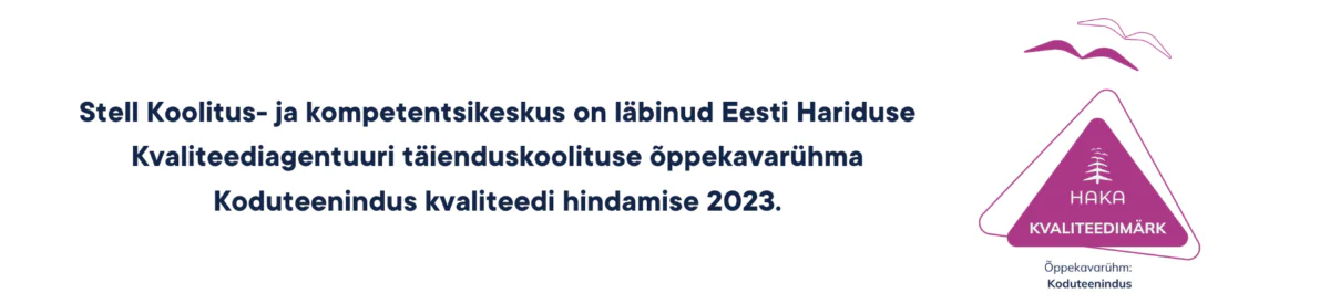 Stell Koolitus-ja kompetentsikeskus on läbinud Eesti Hariduse Kvaliteediagentuuri (HAKA) täienduskoolituse õppekavarühma koduteenindus kvaliteedi hindamise 2023.